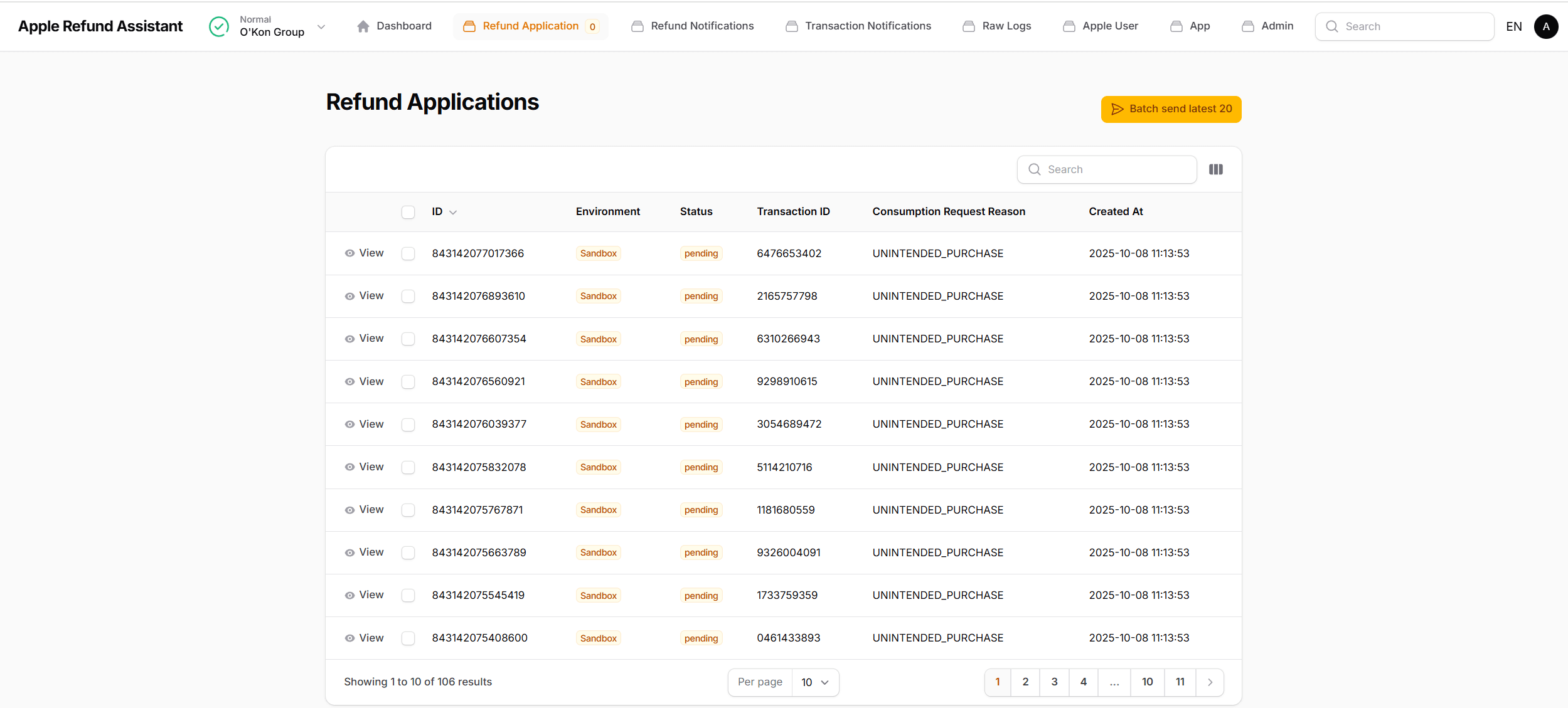 本服务构建于 Laravel / Filament 多租户架构之上, 通过即时处理 Apple 的 CONSUMPTION_REQUEST 通知并异步回传消费数据,有效帮助开发者防范欺诈退款。